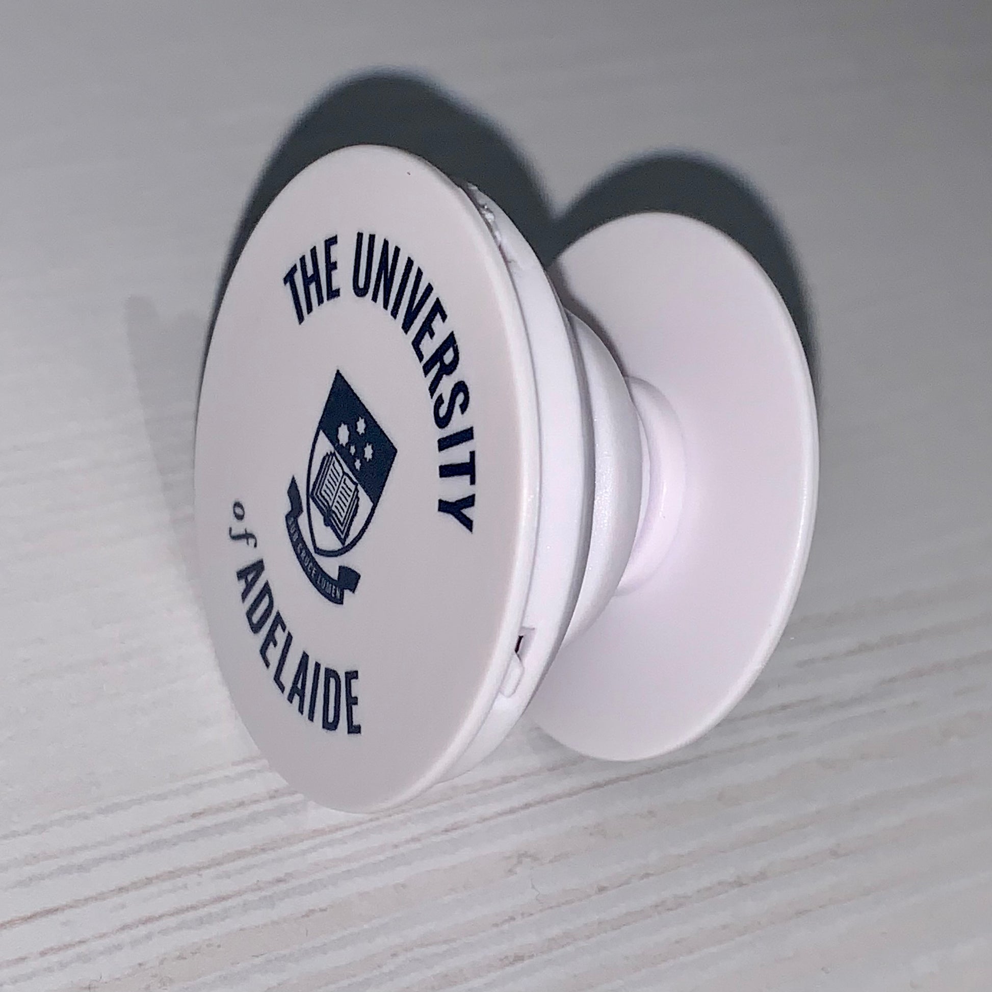 Phone grip pops out and retracts back in. Is also able to be used as a phone stand.